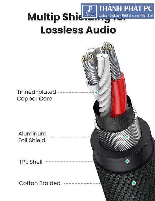 Cáp nối dài audio 3.5mm 2m Ugreen 50241 là sợi cáp lý tưởng để mở rộng kết nối âm thanh AUX 3.5mm của bạn dùng kết nối các thiết bị phát âm thanh như loa, tay nghe... với chất lượng âm thanh tuyệt vời không bị suy hao do sợi cáp được sản xuất bằng các nguyên vật liệu cao cấp bao gồm :