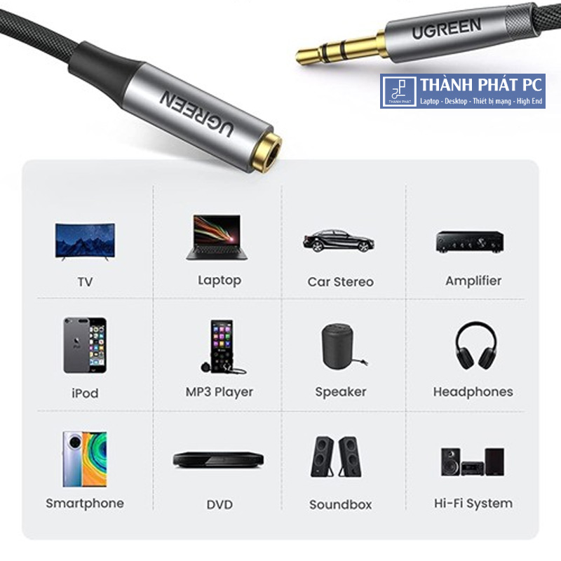 Cáp nối dài audio 3.5mm 3m Ugreen 50242 là sợi cáp lý tưởng để mở rộng kết nối âm thanh AUX 3.5mm của bạn dùng kết nối các thiết bị phát âm thanh như loa, tay nghe... với chất lượng âm thanh tuyệt vời không bị suy hao do sợi cáp được sản xuất bằng các nguyên vật liệu cao cấp bao gồm :