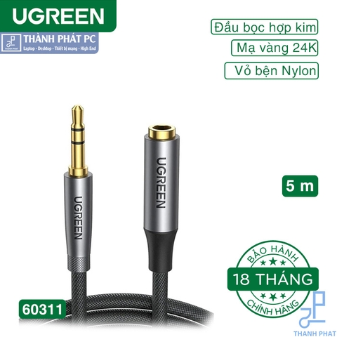 Cáp nối dài audio 3.5mm 5m Ugreen 60311 là sợi cáp lý tưởng để mở rộng kết nối âm thanh AUX 3.5mm của bạn dùng kết nối các thiết bị phát âm thanh như loa, tay nghe... với chất lượng âm thanh tuyệt vời không bị suy hao do sợi cáp được sản xuất bằng các nguyên vật liệu cao cấp bao gồm :