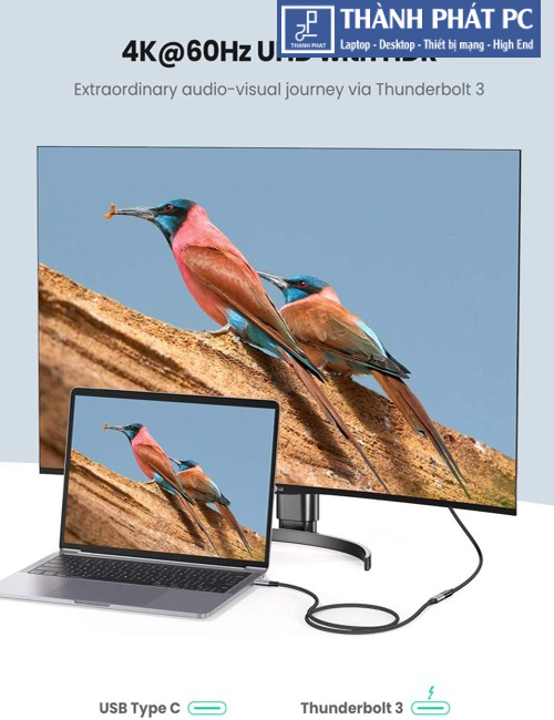 Ngoài việc truyền dữ liệu và sạc thì còn hỗ trợ truyền tín hiệu video 4K lên đến 3840 * 2160 60HZ cho kết nối giữa MacBook của bạn với màn hình khác hoặc màn hình hiển thị có giao diện USB C.