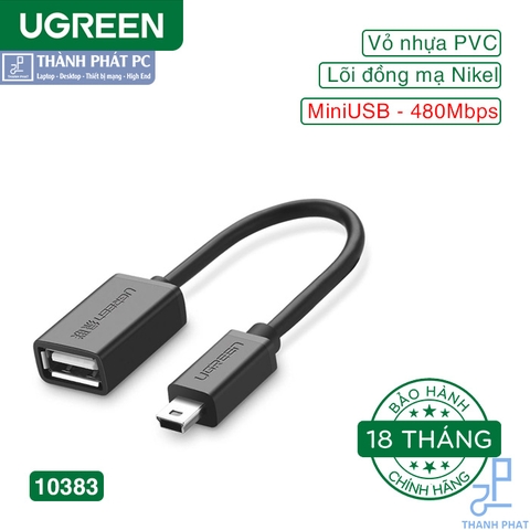 Cáp Mini USB 2.0 OTG cao cấp Ugreen 10383 là sợi cáp tiện ích giúp bạn dễ dàng kết nối các thiết bị USB như chuột, bàn phím, USB, ổ cứng di động, tay cầm chơi game ... với điện thoại, máy tính bảng của bạn qua cổng giao tiếp Mini USB 2.0. Sợi cáp nhỏ gọn đa năng.
