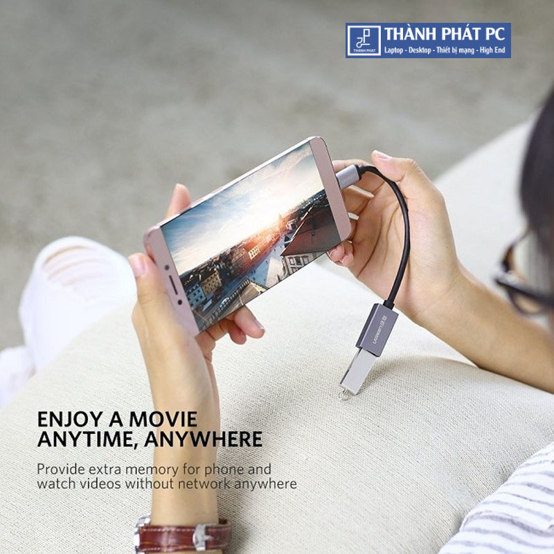 Cáp OTG USB Type C sang USB 3.0 chuẩn A cổng âm - Ugreen 30646 cho phép bạn kết nối ổ đĩa flash, bàn phím, chuột, hoặc các tiêu chuẩn USB-A thiết bị của bạn với một thiết bị USB-C như Apple MacBook mới 12, Google Chromebook, Nokia vvv