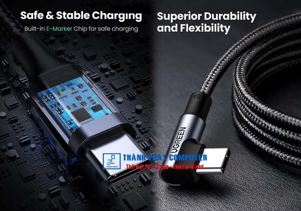 Cáp sạc Ugreen Type-C to Type-C được bảo vệ kép bằng vỏ nhôm và bện nylon, cáp sạc UGREEN Loại C được chế tạo để tồn tại hơn 10.000 lần uốn cong. Ngoài ra, một nắp bảo vệ được thêm vào để ngăn việc tách thiết bị đầu cuối hoặc ngắt kết nối đột ngột.