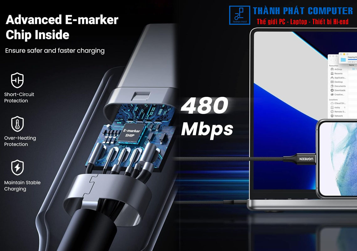- Chipset: E-marker (Bảo vệ ngắn mạch, quá nhiệt, ổn định dòng sạc)