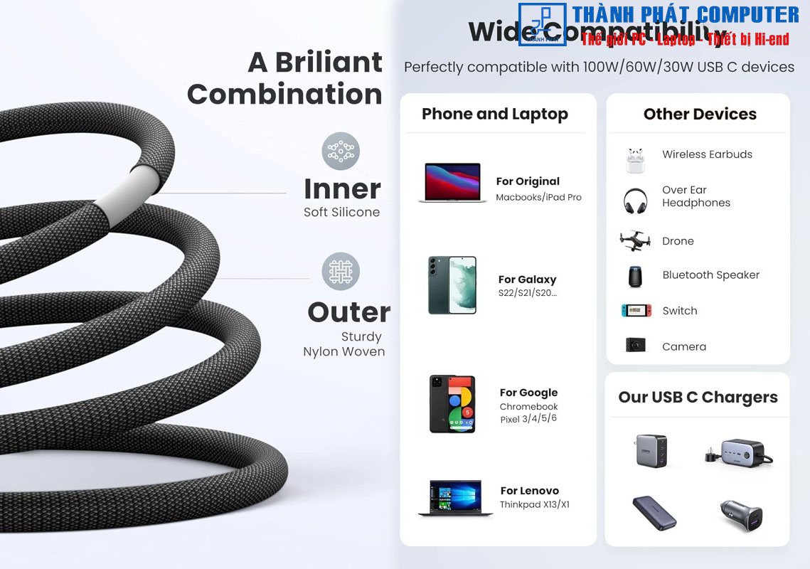 - Tính năng: Cáp sạc nhanh và truyền dữ liệu