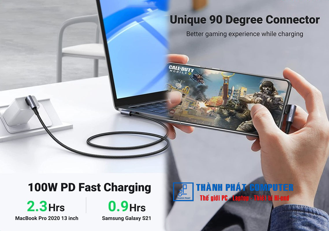 Cáp USB-C to USB-C UGREEN 10357 với thiết kế sáng tạo 90 độ L, sẽ thuận tiện và thoải mái hơn rất nhiều cho bạn khi chơi game, xem video, đọc sách điện tử khi nằm trên ghế sofa hoặc giường trong khi được tải. . Độ dày tối đa cho phép của ốp lưng điện thoại là 2mm.