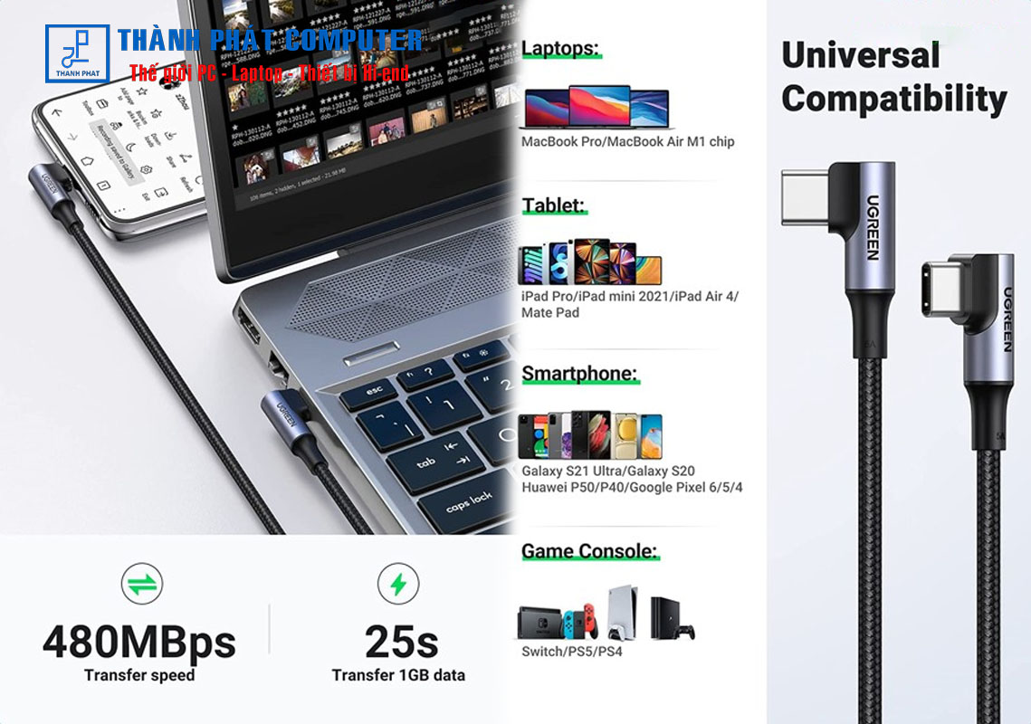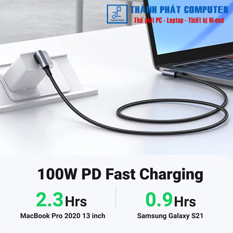 Cáp Ugreen Sạc nhanh máy tính xách tay hoặc điện thoại thông minh USB-C của bạn ở dòng điện tối đa 20V 5A, hỗ trợ sạc nhanh 100W 87W 61W 45W 30W 18W Power Delivery PD. Hỗ trợ tốc độ truyền dữ liệu 480Mbps.