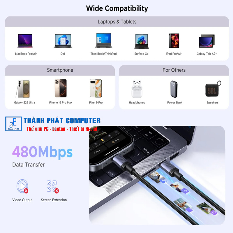 - Tương thích: Laptop, smartphone, tablet và các thiết bị hỗ trợ cổng Type-C