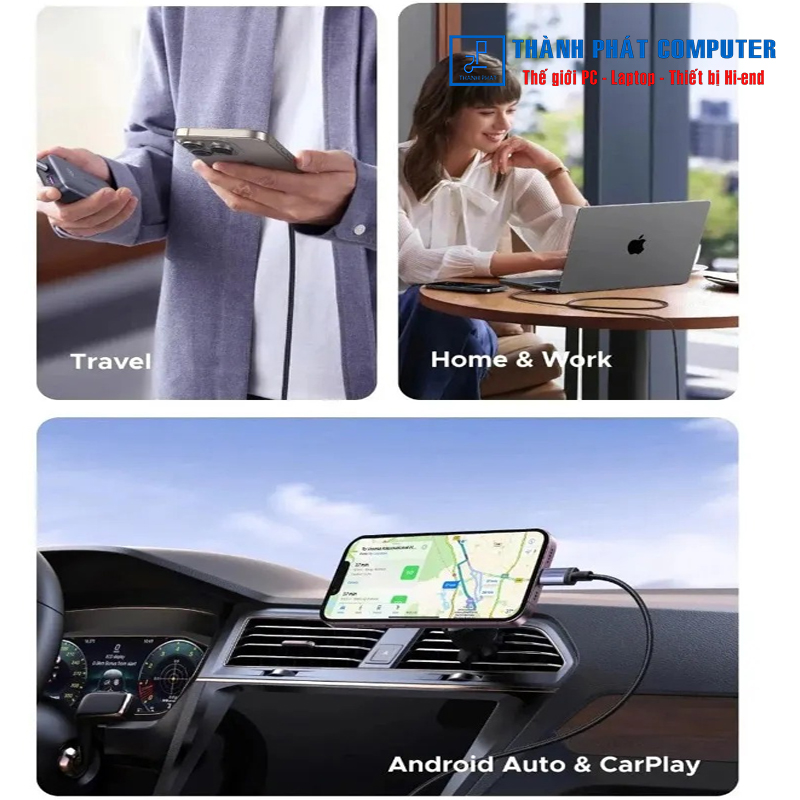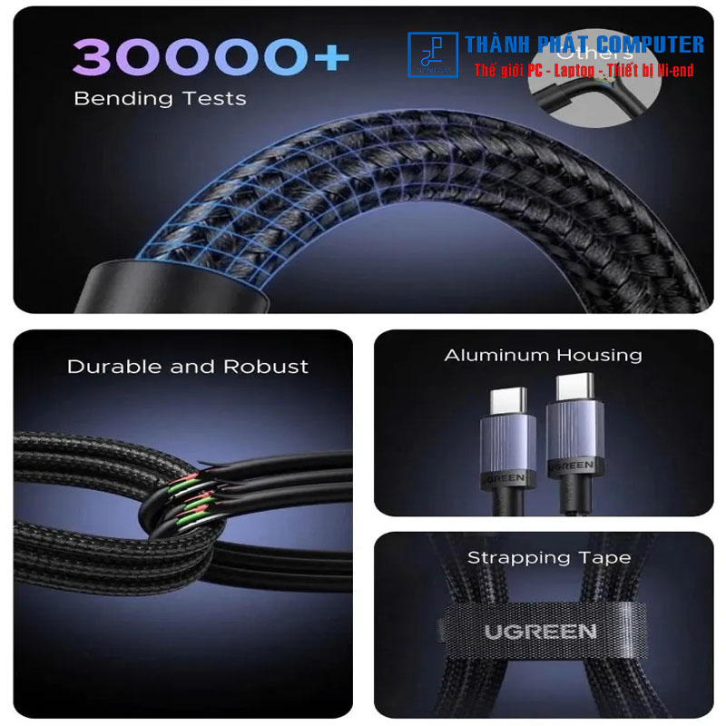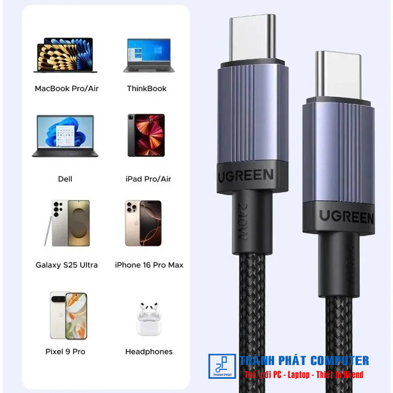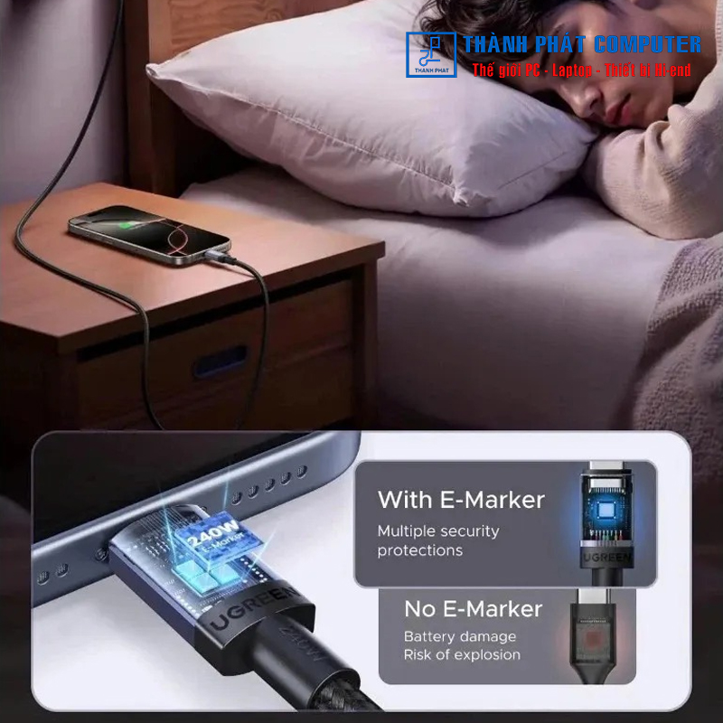 Sạc nhanh 240W Ugreen 65907 cung cấp công suất tối đa 240W, sạc nhanh cho điện thoại, máy tính bảng hoặc máy tính xách tay USB-C của bạn, cũng hỗ trợ 15W, 18W, 27W, 30W, 45W, 60W và 100W, giảm thời gian chết và giúp bạn luôn có điện
