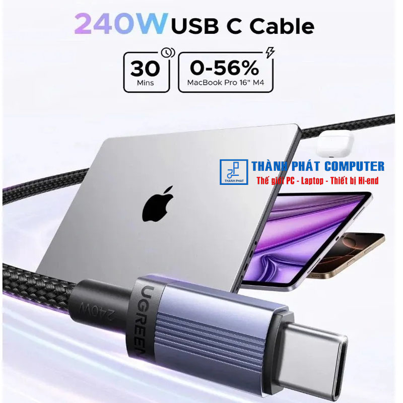 - Tính năng: Cáp sạc 240w USB-C to USB-C cho macbook, iphone 15, s24, s25