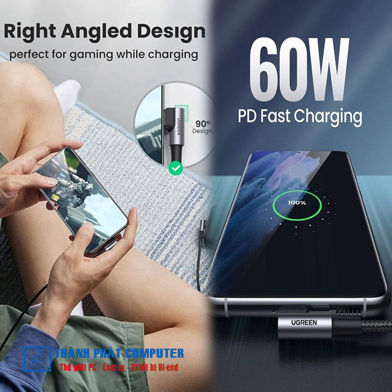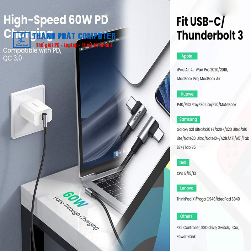 Cáp sạc Type-C to Type-C Ugreen 70529 nhanh hơn 52% so với cáp USB C 60W, đầu ra 60W (20V3A) có khả năng sạc các máy tính xách tay như MacBook Pro 16 inch với tốc độ 39% trong 30 phút ở tốc độ tối đa hoặc sạc đầy năng lượng cho Samsung Galaxy S21 trong 1 giờ mà không có vấn đề gì.