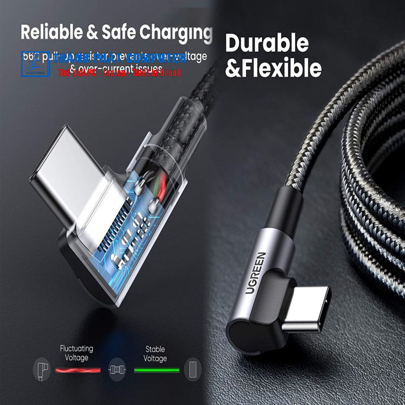 Cáp sạc Ugreen 70529 Type-C to Type-C được bảo vệ kép bằng vỏ nhôm và bện nylon, cáp sạc UGREEN Loại C được chế tạo để tồn tại hơn 10.000 lần uốn cong. Ngoài ra, một nắp bảo vệ được thêm vào để ngăn việc tách thiết bị đầu cuối hoặc ngắt kết nối đột ngột.