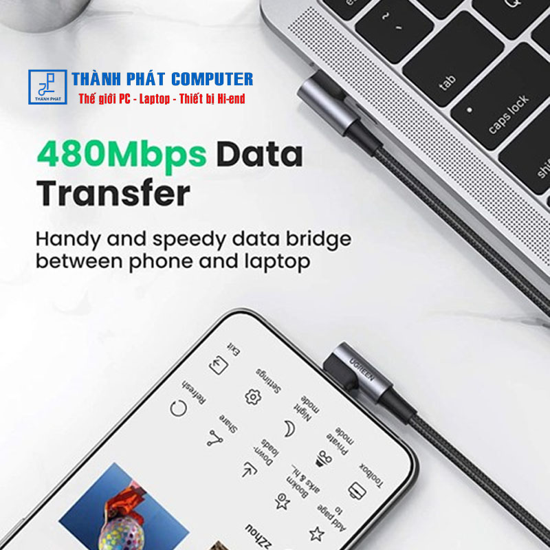Cáp Ugreen 70529 USB C sang USB C cung cấp tốc độ truyền lên đến 480Mbps (USB 2.0) để bạn có thể di chuyển 1GB phim, nhạc, tài liệu hoặc toàn bộ thư viện ảnh trong 30 giây.