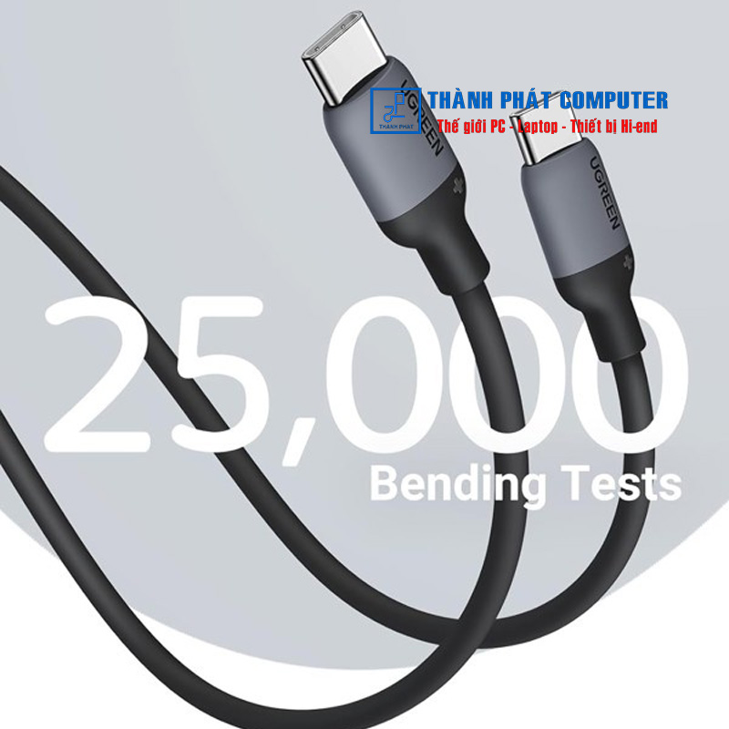 Cáp sạc nhanh 60W USB-C dương/dương Ugreen 15285 được làm bằng chất liệu silicon cao cấp, mang đến cho bạn sự thoải mái vô song. Cho dù cắm hay rút thiết bị của bạn, mọi tương tác đều cực kỳ mượt mà.