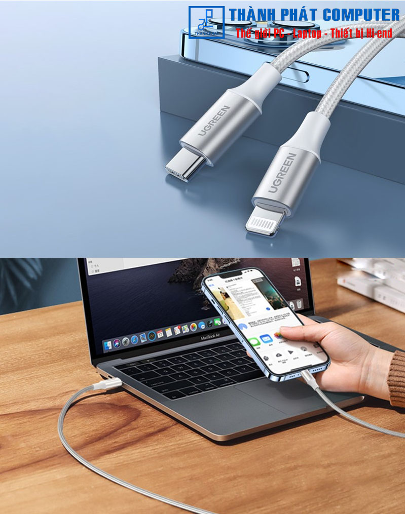USB Type C to Lightning Ugreen cũng hỗ trợ sạc nhanh và truyền dữ liệu iPhone của bạn từ máy tính xách tay hoặc máy tính để bàn USB-C trực tiếp. Và tốc độ truyền dữ liệu lên tới 480Mb / giây. Tập tin lớn 1G sẽ được hoàn thành sau 25s.