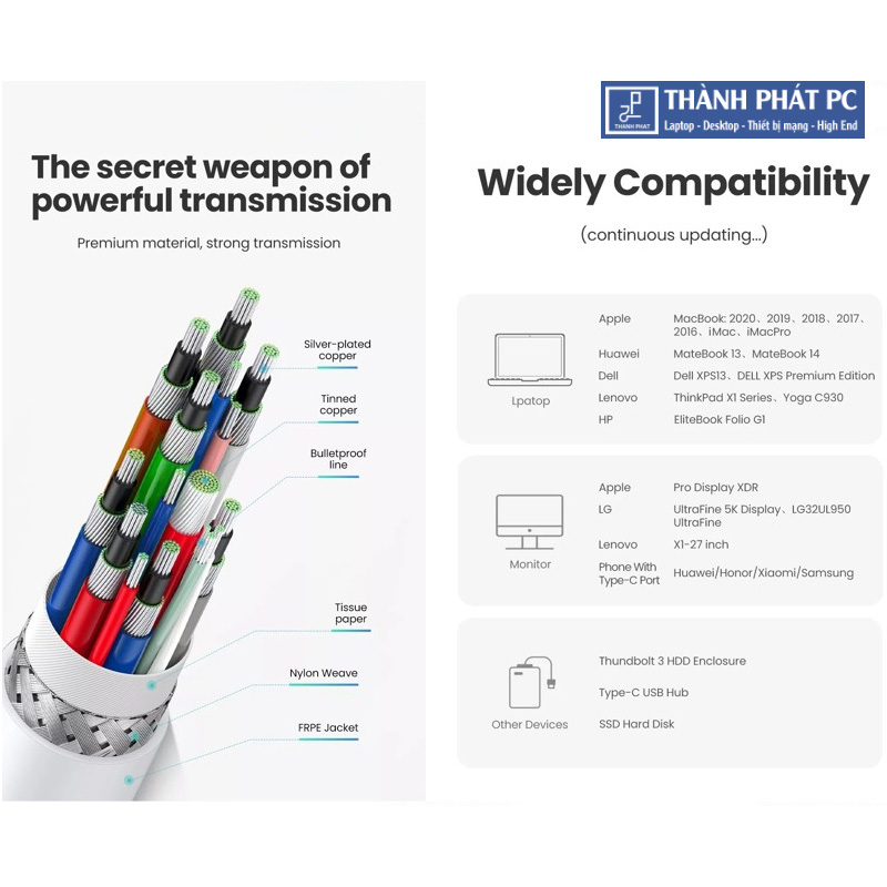 Hoạt động hoàn hảo với tất cả các thiết bị USB-C. Tương thích với Macbook Pro, Air, iMac, Huawei MateBook, Dell XPS13 XPS15, HP Spectre, EliteBook, Lenovo Carbon X1, ThinkPad X1, Samsung NoteBook, Razer Blade, Docking Station, Hard Drive, eGPU, v.v.