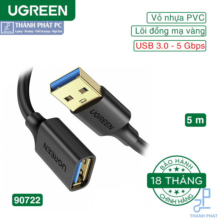 Cáp nối dài USB 3.0 Ugreen 90722 đầu nối USB A Cáp nối dài USB này có thể được sử dụng cho kết nối ở khoảng cách xa lên đến 16,4 ft (5 m). Tuyệt vời cho nhiều tình huống, bao gồm phần mở rộng camera mạng, dây mở rộng camera từ xa, đĩa cứng ghi TV, cáp máy in mở rộng, v.v.