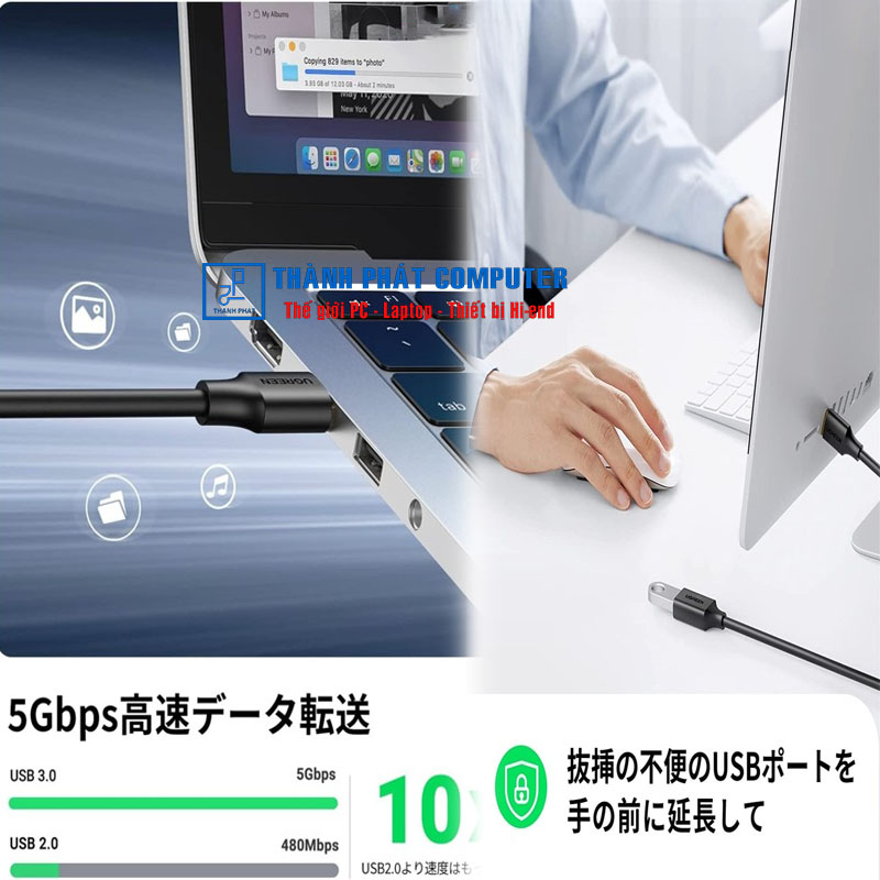 Mở rộng kết nối giữa PC USB (Loại A), MacBook và các thiết bị ngoại vi USB khác nhau như ổ cứng, bộ chia USB, chuột, bàn phím, ổ đĩa flash, đầu đọc thẻ, bộ điều hợp Bluetooth, máy in, máy quét, v.v.