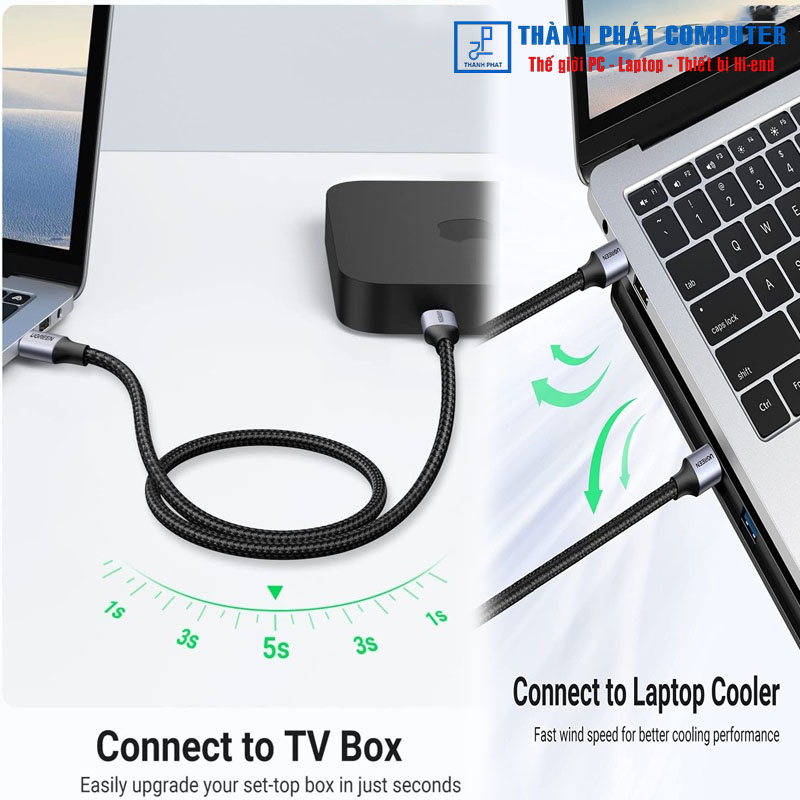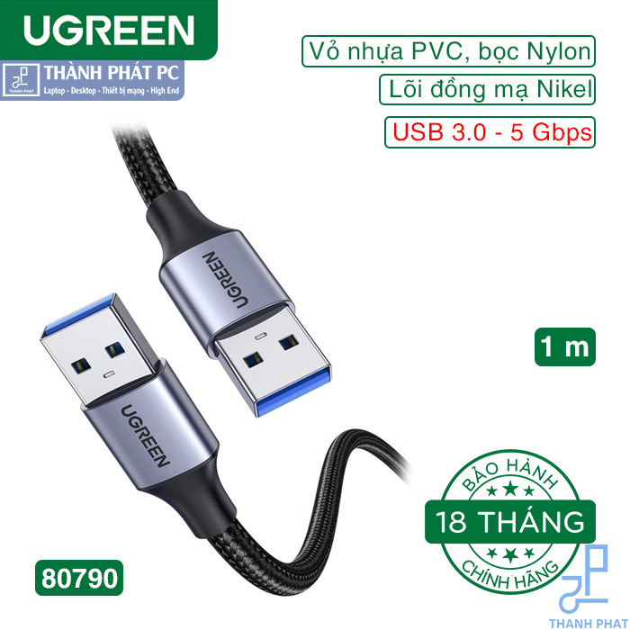 Cáp USB 3.0 Ugreen 80790 kết nối các thiết bị ngoại vi USB có cổng USB 3.0 Loại A với máy tính để truyền tệp nhanh. Nó phục vụ như một phần mở rộng cho kết nối USB 3.0 của bạn.