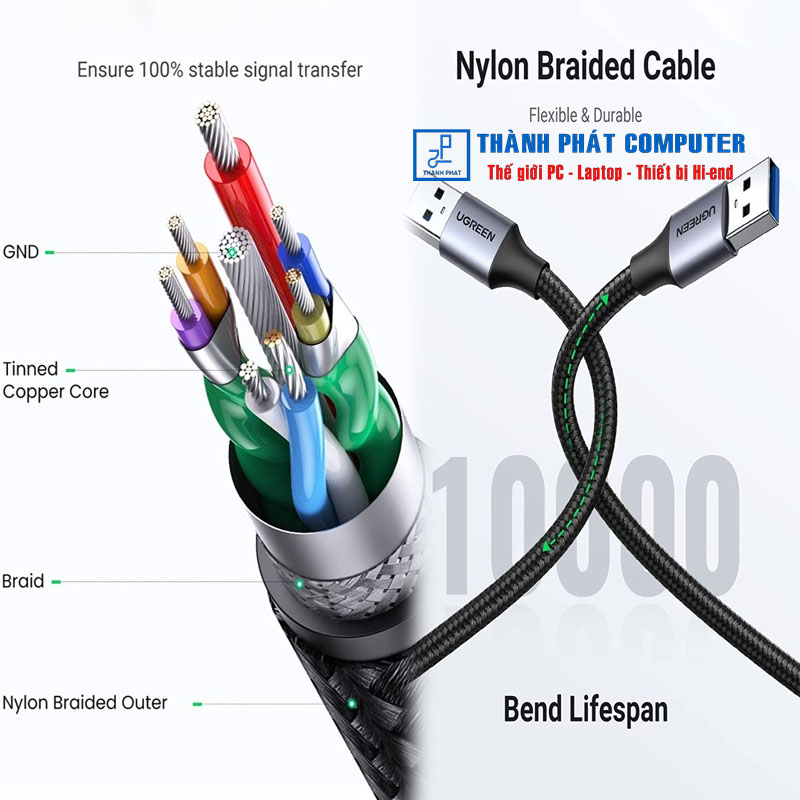 Vỏ bọc cáp chất liệu nylon bện không nút thắt và vỏ nhôm chống mài mòn giúp cáp đực-đực này uốn cong hơn 10000 lần uốn, sự kết hợp giữa các đầu nối mạ niken, mạ lá và dây bện giúp truyền dữ liệu ổn định và nhanh chóng.
