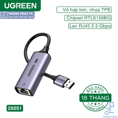 Cáp chuyển đổi USB sang Ethernet 2,5G Ugreen 25051 cung cấp tốc độ tối đa 2,5Gbps và tương thích ngược với 1000/100/10Mbps, hoàn hảo để tải lên và tải xuống liền mạch, phát trực tuyến, chơi game, v.v. mượt mà.
