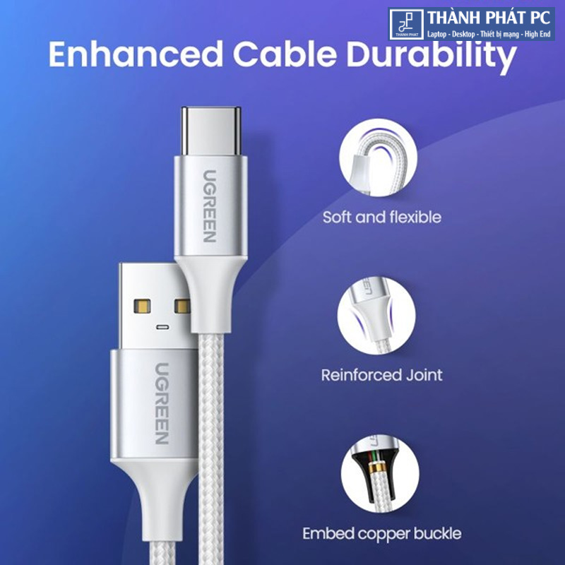 Cáp sạc nhanh, dữ liệu USB type-C chính hãng Ugreen 60131 hỗ trợ sạc nhanh 18W cho điện thoại thông, máy tính bảng và các thiết bị sắp tới khác với củ sạc tường, hoặc pin sạc dự phòng, sử dụng để kết nối dữ liệu máy tính.