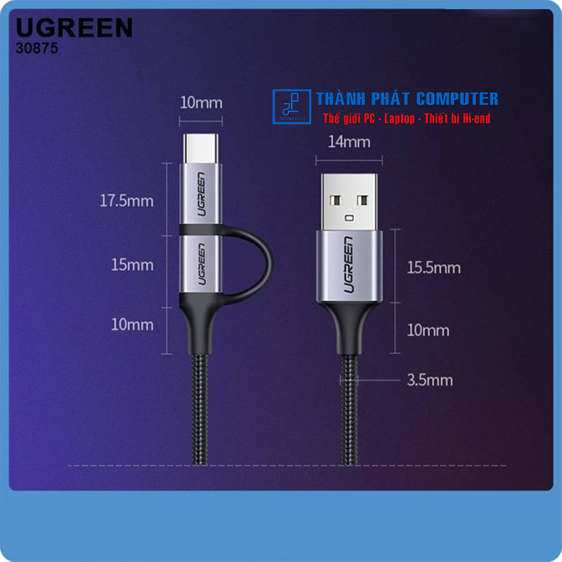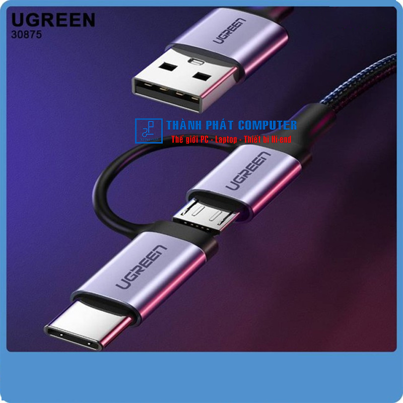 Cáp sạc dữ liệu Ugreen 30875 thiết kế 2 trong 1 từ USB A sang USB C và micro USB kết nối các thiết bị của bạn với đầu nối USB A như máy tính xách tay, PC với điện thoại di động hoặc máy tính bảng có dây loại c hoặc micro USB. Cổng kết nối 2 trong 1 không chỉ tiết kiệm một khoản chi phí cho bạn mà còn mang đến cho bạn trải nghiệm mới cũng như sự tiện lợi.