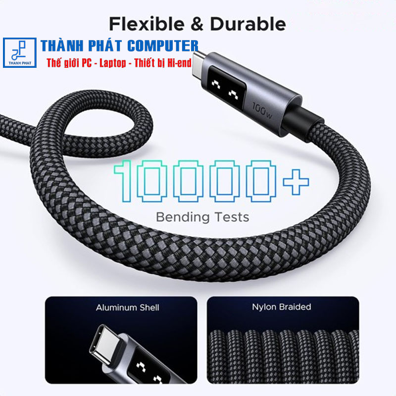 Vỏ hợp kim nhôm, bện nylon hai lớp và hàn laser giúp cáp USB C to C này bền hơn 15 lần so với các loại cáp khác. Vượt qua thành công hơn 10000+ thử nghiệm uốn cong và hơn 20000+ thử nghiệm cắm mà không bị xoắn, giật và rối