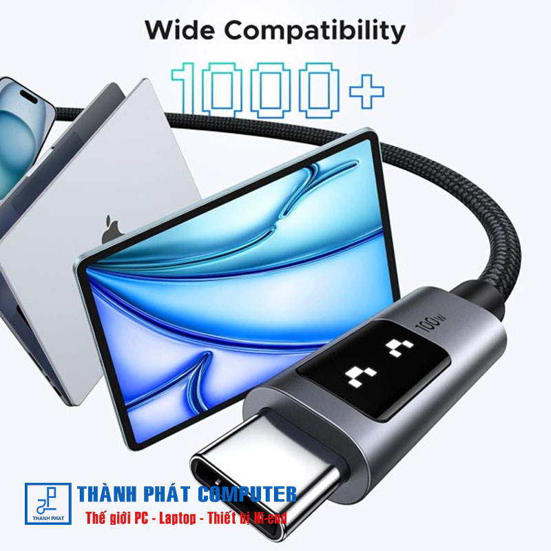Cáp USB-C 100W của UGREEN tương thích với hầu hết tất cả các thiết bị USB-C, như MacBook Pro M3, MacBook Air 13, Thinkpad, Surface, Dell, iPad Pro 2024, iPad Air 5, iPhone 16/15 Plus/Pro/Pro Max, Galaxy S24/S23 Ultra, Pixel 9 Pro