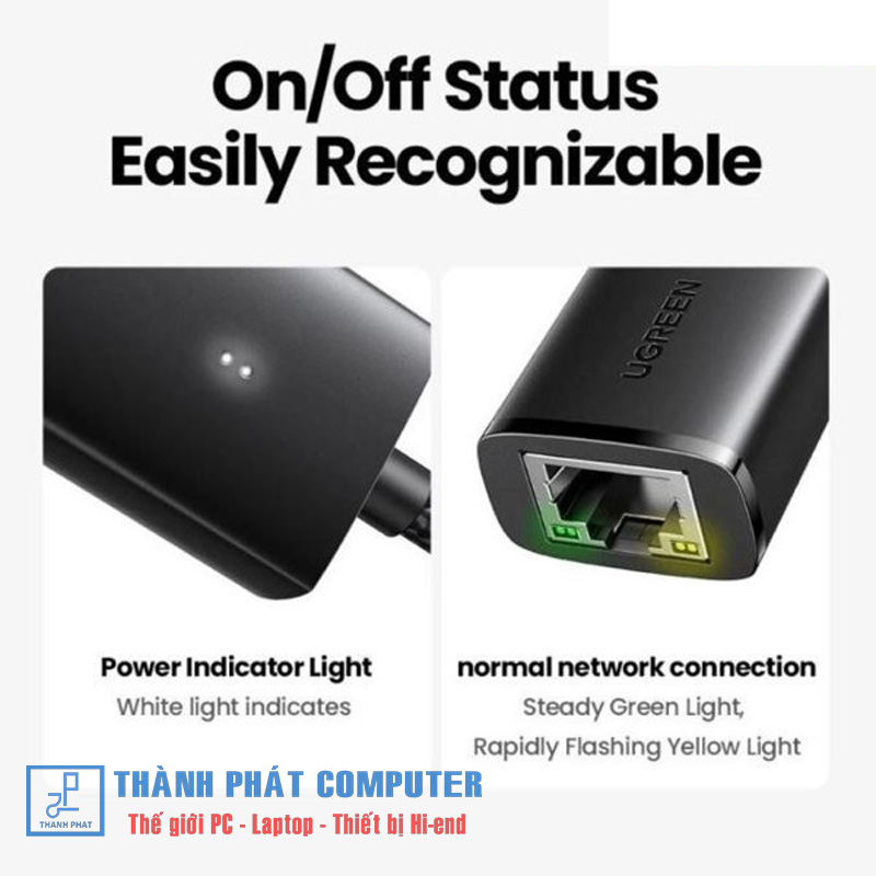 Bộ chuyển đổi Ethernet Ugreen 15637 USB-C 3.0 đực sang RJ45 kết nối máy tính hoặc máy tính bảng của bạn với bộ định tuyến, modem hoặc bộ chuyển mạch mạng để kết nối mạng.