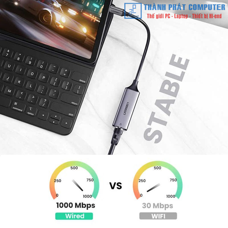 Cáp chuyển Usb Type-C to Lan 10/100/1000Mbps Ugreen 50737 (tương thích với Thunderbolt 3) sang cổng Gigabit Ethernet Ugreen 50737 có được tốc độ mạng nhanh hơn, đáng tin cậy hơn so với Wi-Fi. Thật tốt để tránh nhiễu Wi-Fi và các vấn đề về quyền riêng tư.