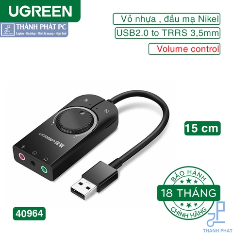 Cáp USB Sound Card Ugreen 40964 là phụ kiện cao cấp giúp kết nối loa, tai nghe, micro tới máy tính của bạn thông qua cổng USB 2.0 với chất lượng âm thanh tuyệt vời không thua kém các card âm thanh nào khác, cần thiết trong các trường hợp thay thế cổng audio, mic bị hỏng hoặc các máy tính không hỗ trợ cổng audio.