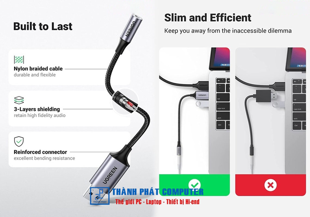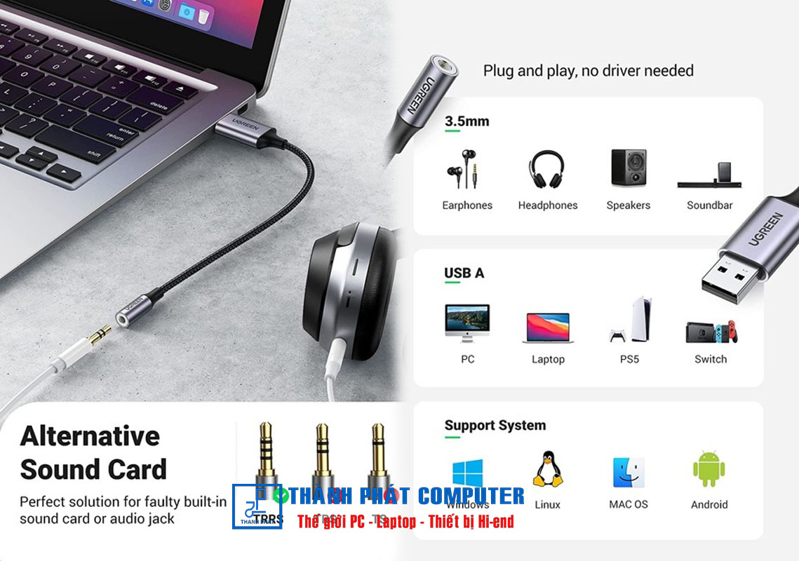 Ugreen 30757 là 1 card âm thanh hỗ trợ nghe và nói, chức năng điều khiển và micrô trong cho phép bạn trò chuyện trong khi chơi. Card âm thanh USB bên ngoài được thiết kế để cải thiện chất lượng âm thanh của máy tính xách tay hoặc máy tính để bàn của bạn. Bộ chuyển đổi USB aux này cho phép bạn kết nối tai nghe, loa có giắc cắm 3,5 mm với PC thông qua giao diện USB A.