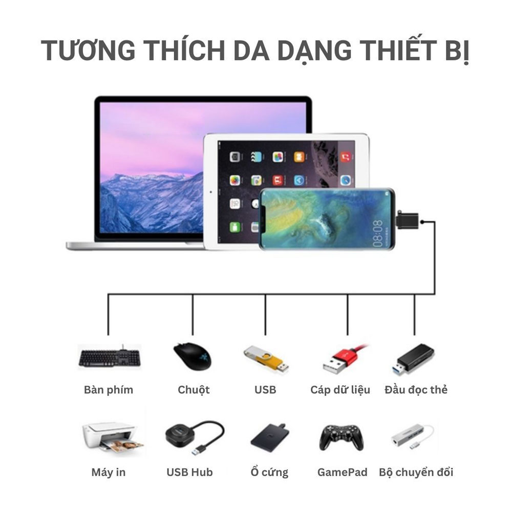 Sản phẩm này cung cấp giải pháp tiện lợi để mở rộng khả năng kết nối của thiết bị Type-C với các thiết bị USB khác, giúp bạn truyền dữ liệu và sử dụng phụ kiện dễ dàng hơn.