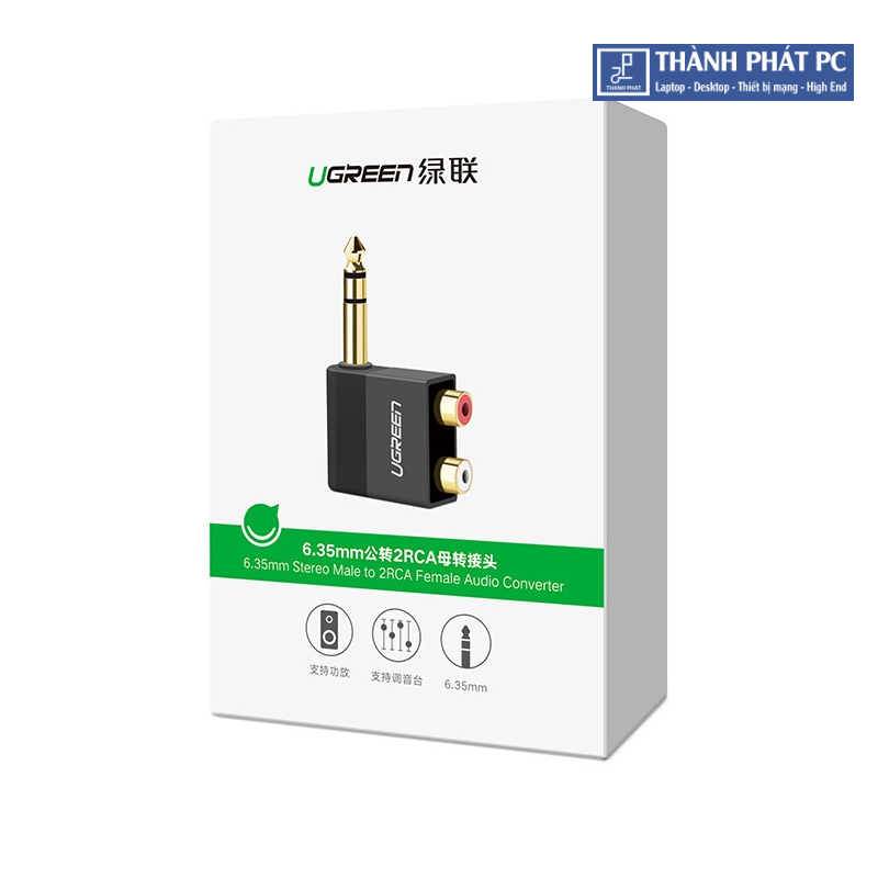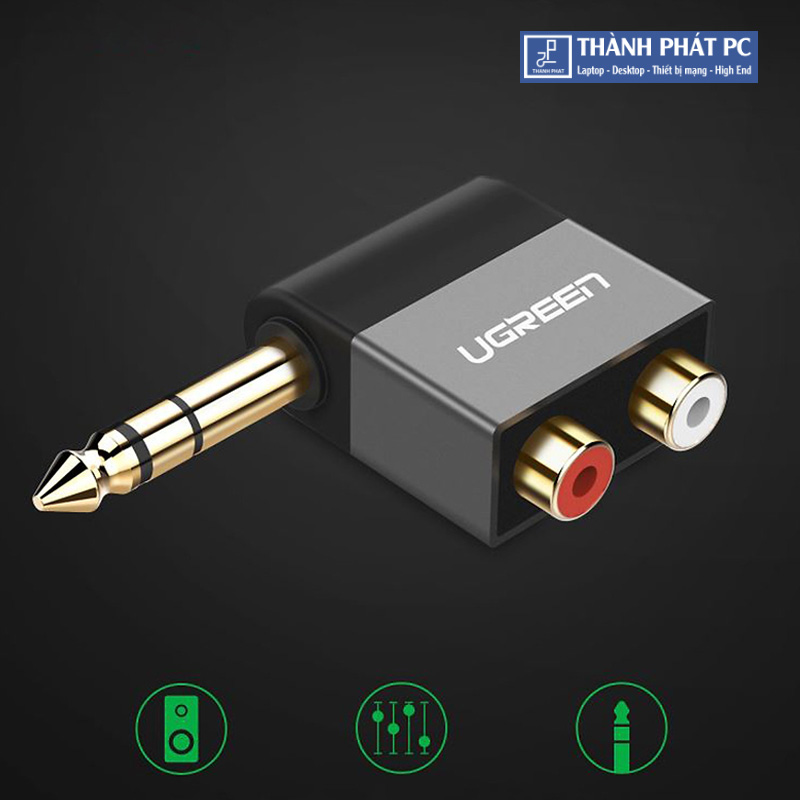 Đầu chuyển đổi âm thanh 6.5mm sang RCA Ugreen 40846 sử dụng để chuyển đổi tín hiệu từ thiết bị có chuẩn RCA với Âm ly, Mixing Console, Mixer, home theater devices, amplifiers or av receiver...