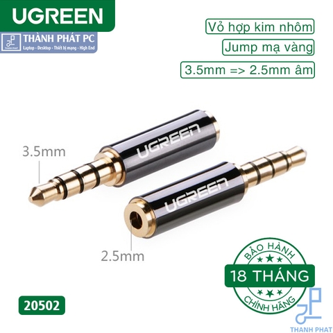 Đầu chuyển đổi rắc Audio 3.5mm sang 2,5mm - Ugreen 20502 là đầu chuyển đổi rắc loa cổng 3.5mm sang cổng 2.5mm âm. Đây là giải pháplý tưởng để kết nối điện thoại hoặc 1 số sản phẩm khác sang cổng 3.5 của dàn âm thanh hay hệ thống loa của bạn