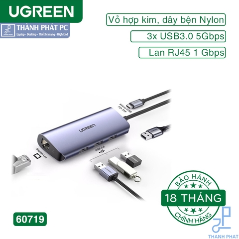 Bộ chia USB 3.0 ra 3 cổng USB 3.0 + Lan Gigabit 1000Mbps Ugreen 60719 là phụ kiện cao cấp giúp mở rộng thêm 3 cổng USB 3.0 cho các thiết bị như máy tính