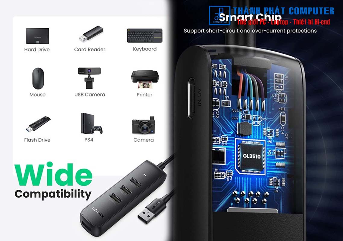 Bộ chia USB 3.0 UGREEN 80657 là một bộ mở rộng tuyệt vời cho máy tính xách tay không có đủ cổng USB, chỉ cần thêm 4 cổng USB và hỗ trợ truy cập đồng thời, như bàn phím, chuột, ổ đĩa flash, webcam, micrô USB, ổ cứng ngoài HDD / SSD, thẻ USB đầu đọc, Quạt USB, tai nghe USB, máy in mà không có bất kỳ độ trễ hoặc nhiễu nào.