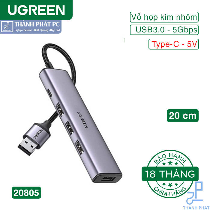 Bộ chia USB 3.0 Ugreen 20805 này chuyển đổi 1 ra 4 cổng USB, hỗ trợ ổ đĩa flash USB, chuột, bàn phím, máy in hoặc bất kỳ thiết bị ngoại vi USB nào khác. Và nó tương thích với các thiết bị USB 2.0/1.0 cũ hơn của bạn.