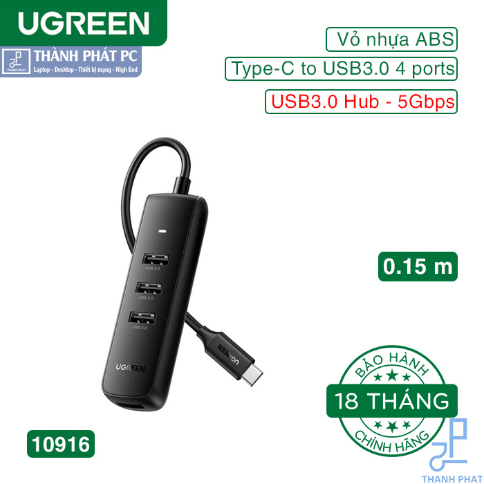 Bộ chuyển đổi USB C Ugreen 10916 sang USB với 4 cổng USB 3.0, mở rộng ngay lập tức 4 cổng USB để kết nối thêm 4 thiết bị USB với máy tính xách tay của bạn, chẳng hạn như ổ cứng di động, ổ USB, chuột, bàn phím, đầu đọc thẻ và các thiết bị USB khác.