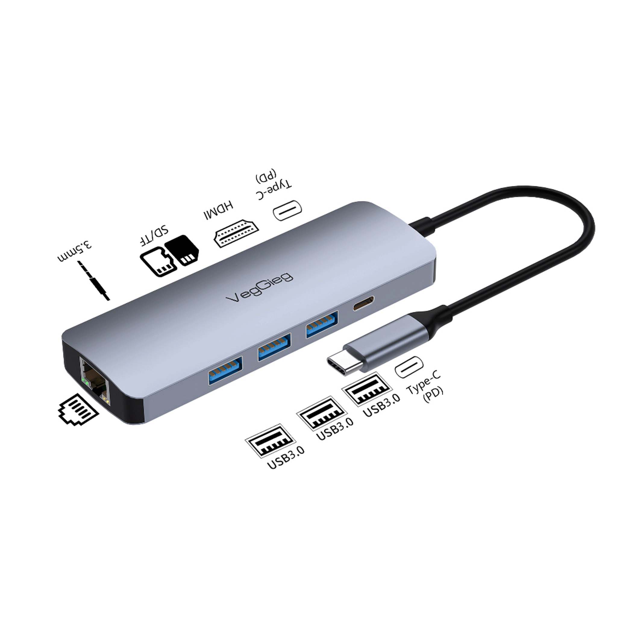 Cổng Chuyển Đổi Type-C VegGieg V-TC10R là thiết bị chuyển đổi đa năng, mang lại sự tiện lợi và linh hoạt cho người dùng với nhiều cổng kết nối hiện đại.