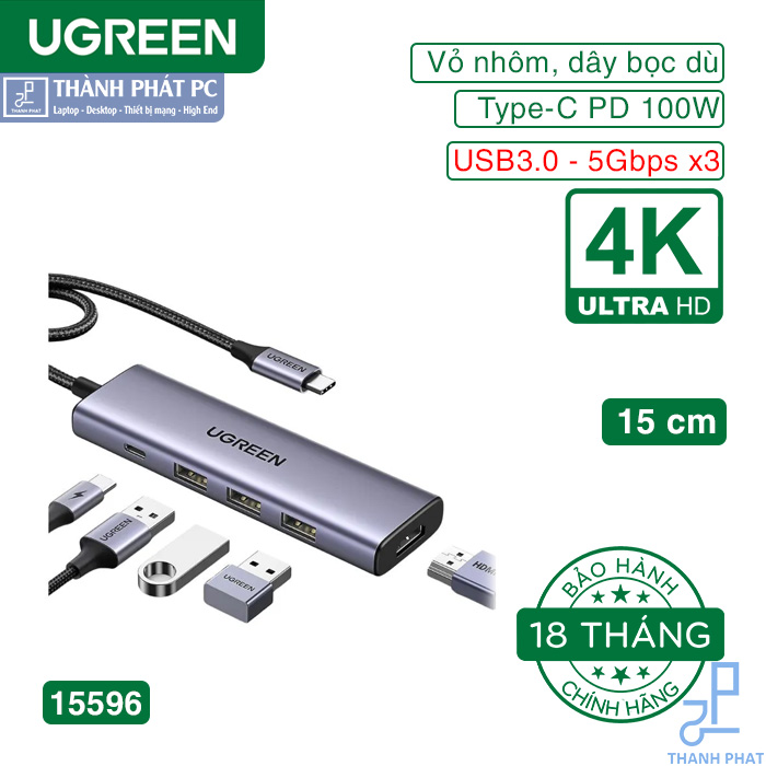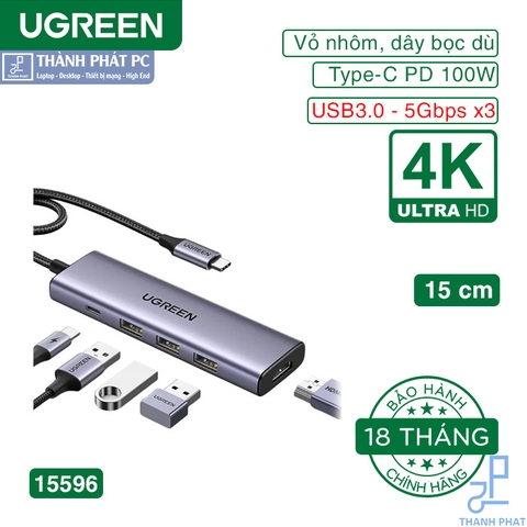 Bộ chuyển đổi điều hợp đa cổng USB-C Ugreen 15596 Revodok được trang bị cổng HDMI 4K, cổng sạc USB-C PD 100W, cổng dữ liệu USB-A 5Gbps.