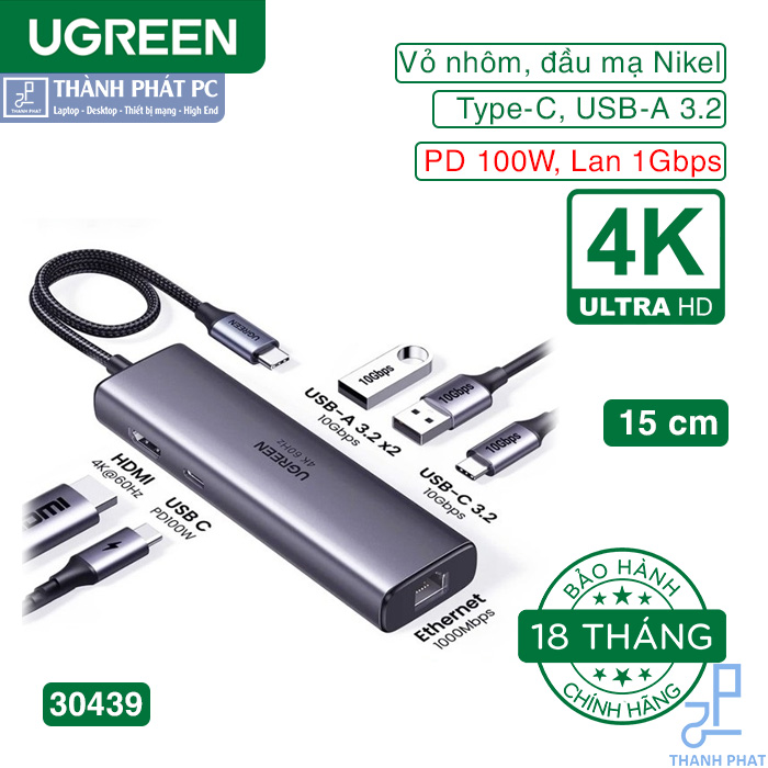 Hub USB-C 6 trong 1: Khai thác tối đa tiềm năng của cổng USB-C trên máy tính xách tay của bạn với cổng USB-C 3.2 Gen 2 10 Gbps, hai cổng USB-A 10 Gbps, HDMI 4K@60Hz, Công suất sạc PD 100W. Từ USB-C Hub 6 trong 1 Ugreen 45000 CM512.