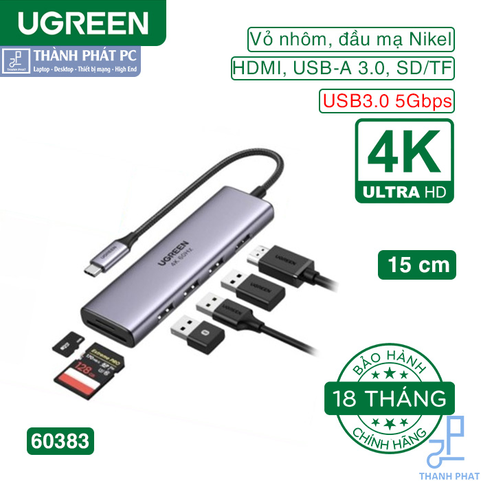 Ugreen 60383 hỗ trợ phản chiếu hoặc mở rộng màn hình của bạn với cổng HDMI của bộ chuyển đổi USB C và truyền trực tiếp video 4K@60Hz UHD hoặc video full HD 1080P lên HDTV.