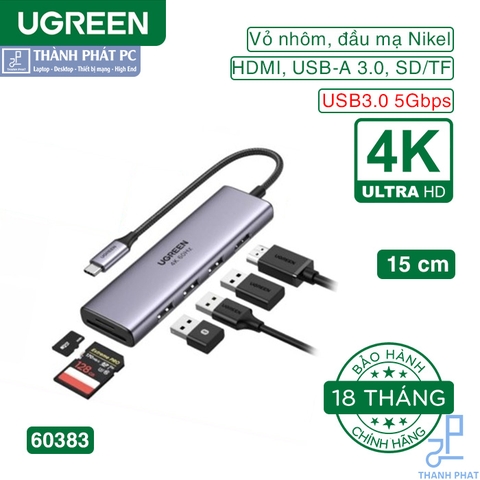 Ugreen 60383 6 trong 1 USB C Hub là người bạn đồng hành thời trang và di động cho máy tính xách tay, điện thoại USB-C của bạn.