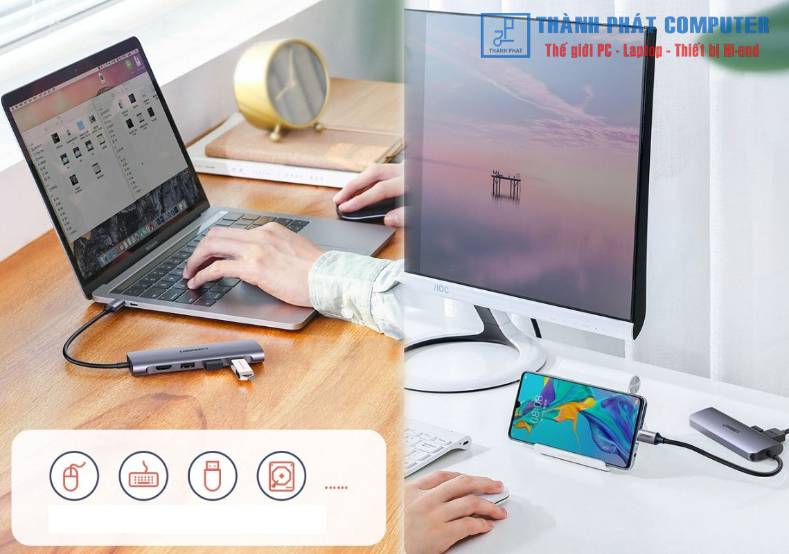Kích thước : Nhỏ gọn và nhẹ, cho phép bạn mở rộng khả năng sử dụng máy tính xách tay của mình khi đang di chuyển. Trung tâm USB-C của UGREEN với lớp vỏ nhôm bóng bẩy kết hợp hoàn hảo với MacBook. Vỏ nhôm tốt hơn cho tản nhiệt, linh kiện điện tử và mạch điện sẽ được tiến hành ra bên ngoài nhanh hơn, giúp bộ chuyển đổi USB-C này an toàn hơn khi sử dụng.