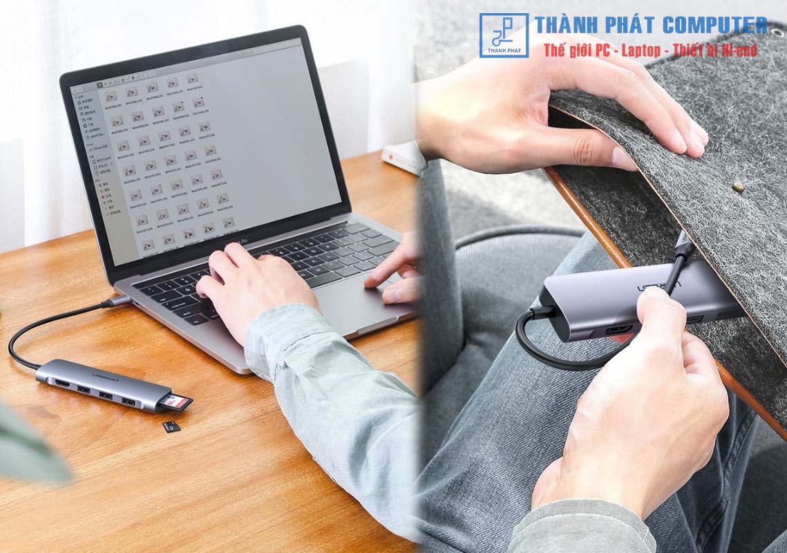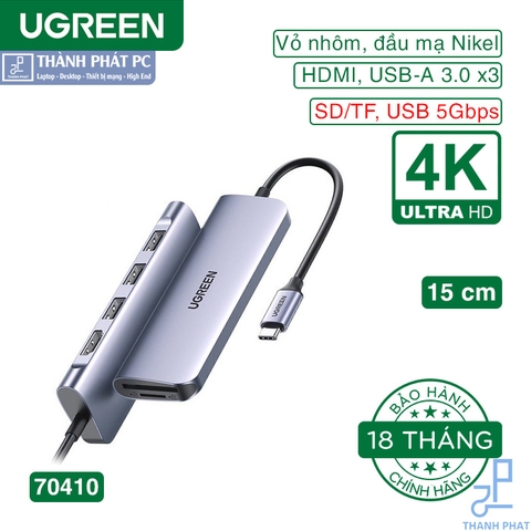 Thiết bị Hub USB-C chính hãng Ugreen 70410 có cổng đầu ra 4K HDMI, đầu đọc thẻ SD và TF, 3 cổng USB 3.0 . Và tất cả các cổng trung tâm có thể hoạt động đồng thời, nhỏ nhưng mạnh mẽ. Tương thích với MacBook Pro...