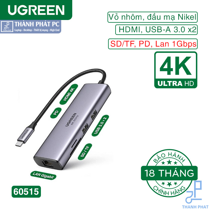 Bộ chia USB-C 7 trong 1 của Ugreen 60515 có cổng Ethernet 1000Mbps, cổng HDMI 4K@60Hz, cổng sạc USB C với phân phối điện 100W, đầu đọc thẻ SD/TF và 2 cổng USB 3.0. Kết nối với các thiết bị MacBook Pro hoặc USB-C mới nhất bằng bộ chuyển đổi đa cổng để mang lại sự tiện lợi cho công việc của bạn.