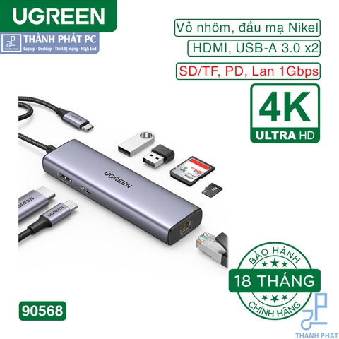 Hub USB-C Ugreen 90568 mở rộng 7 cổng như HDMI, Ethernet, 2 cổng USB 3.0, cổng USB C, SD và Micro SD sạc qua cổng PD cho máy tính xách tay hoặc máy tính bảng của bạn, mở rộng không gian làm việc và cải thiện năng suất của bạn