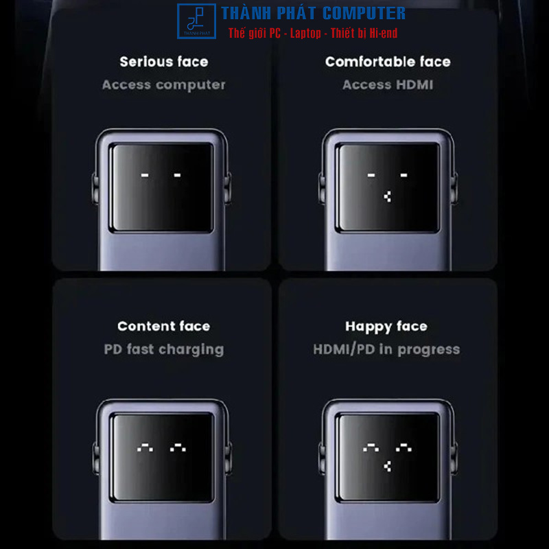 Tính năng: Hub chuyển đổi đa năng Ugreen 45155, Robogan, 3 trạng thái LED, dây nối bọc dù, hỗ trợ 4K60Hz, 5Gbps, sạc nhanh PD3.0 100W